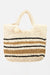 The Striped Straw Braided Tote Bag is a trendy and summery accessory that combines beachy vibes with a chic aesthetic. This tote bag features a unique blend of striped patterns and braided straw construction for a stylish look. The colorful stripes add a playful and eye-catching element to the design, perfect for adding a pop of color to your outfit. With its spacious interior and durable straw material, this tote bag is both fashionable and practical for carrying your essentials. Whether you're lounging by the pool or exploring a new town, this bag is a versatile choice. Embrace the sunny and carefree spirit of summer with the Striped Straw Braided Tote Bag, a must-have accessory for your warm-weather adventures. Elevate your summer ensemble with this chic and on-trend tote that exudes casual sophistication and beachside charm.