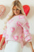 - The sweater is charmingly detailed with heart shapes adding a sweet and playful touch.