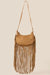 The Suede Fringe Crossbody Bag is a stylish and bohemian accessory to elevate your outfit. Crafted from luxurious suede material, this bag offers a touch of sophistication and texture. The fringe detailing adds a playful and trendy element to the design. With its crossbody style, it allows for hands-free convenience while on the go. Perfect for adding a touch of Western flair to your ensemble, this bag is versatile and chic. Make a fashion statement with the Suede Fringe Crossbody Bag and add a touch of flair to your look.