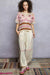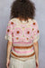 This V-neck short-sleeve top is crafted in crochet with a relaxed fit for a comfortable wear. The varied open weave pattern details add a touch of intricacy and texture to the design. Border accents further enhance the aesthetic appeal of the top, creating a stylish and eye-catching look.